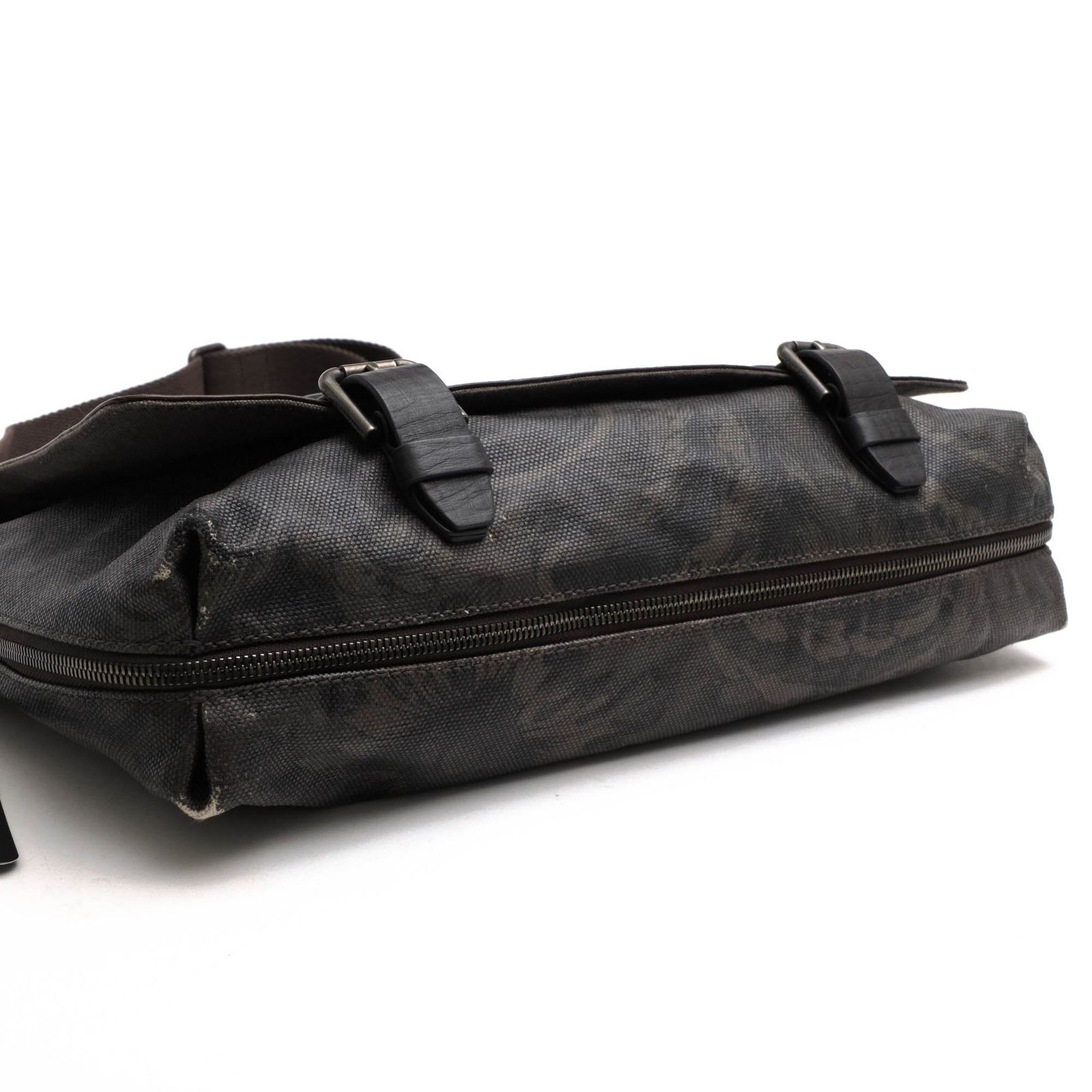ドルチェ&ガッバーナのアンティーク調パターンの大型メッセンジャーバッグ。耐久性の高いキャンバスとカーフスキンをメイン素材に、魅力的なロゴプレートがアクセントを加えています。メインコンパートメントは二つのバックルで安全に閉じられ、底部のジッパーによって拡張可能な収納スペースを提供。フロントフラップのジップポケット、内側のジップポケット、携帯電話ポケット、カードポケット、ペンホルダーを備え、日常からビジネスシーンまで幅広く対応します。質感を際立たせるマットシルバーの金具、フロントのレザーロゴプリント、そして調節可能なショルダーストラップが機能性を高めます。