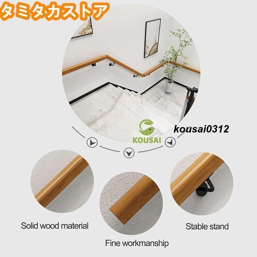 階段用 手摺り 屋内屋外兼用型 階段てすり 滑り止め 階段の手すり レールブラケット付き ノンスリップ木製手すり 屋内階段用 階段の手す