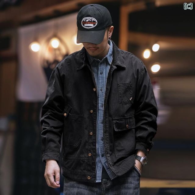 XL - 70-80 kg メンズ ファッション 服 男性用 オシャレ シンプル 大人 かっこいい 大きいサイズ ストリート 紳士服 グリーン アメリカン レトロ ウォッシュ カジュアル シャツ ジャケット トップス ワークジャケット