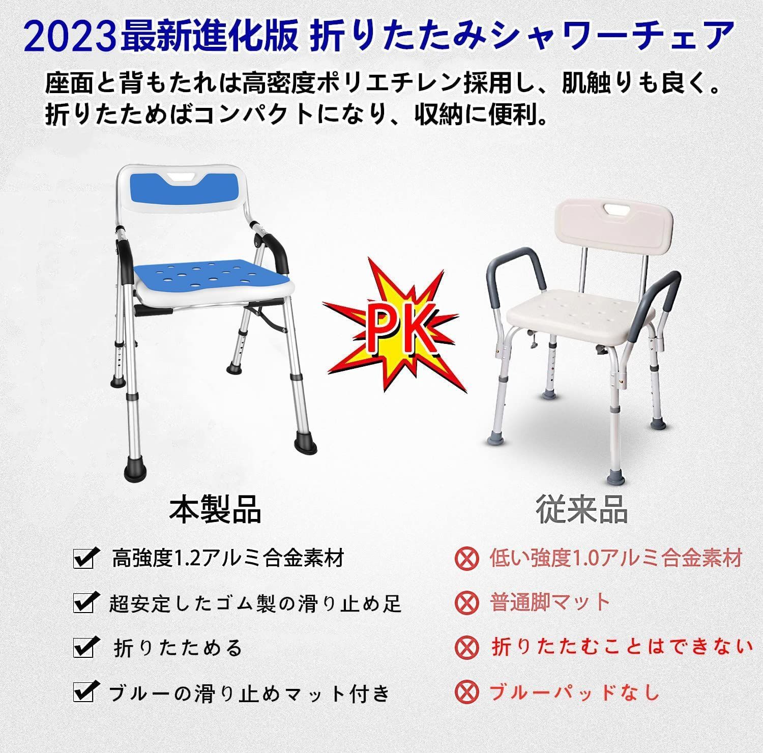 折りたたみシャワーチェア【2023新登場お介護椅子】シャワーチェアー 介護用 軽量 丈夫 アルミ合金フレーム 介護用品 風呂椅子 4段階高さ調節可能 バスチェア 耐荷重150KG 介護チェア 転倒防止 ベンチ 立ち上がり補助 入浴用品 収納に便利 日本語説明書付き