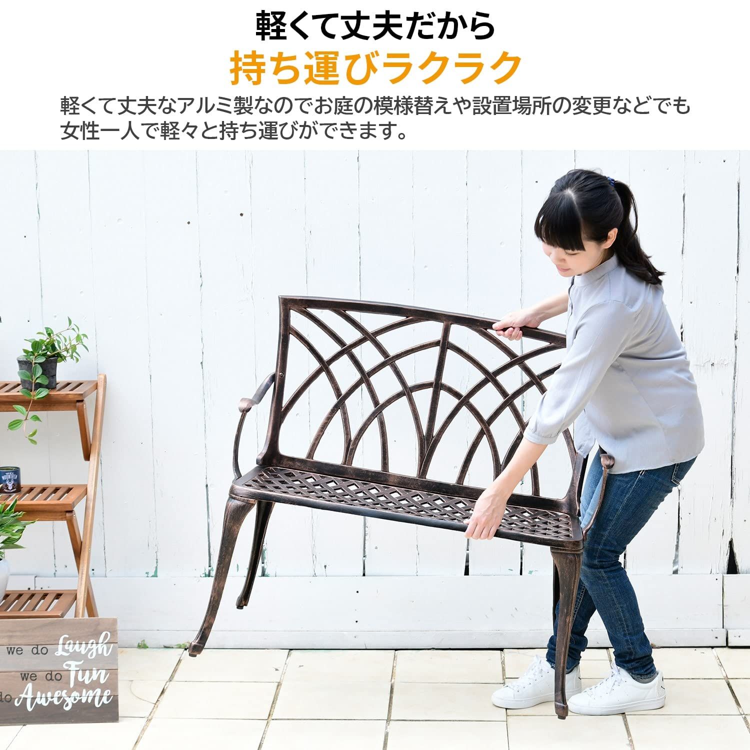 落ち着いたブラウン色のアンティーク調アルミガーデンベンチです