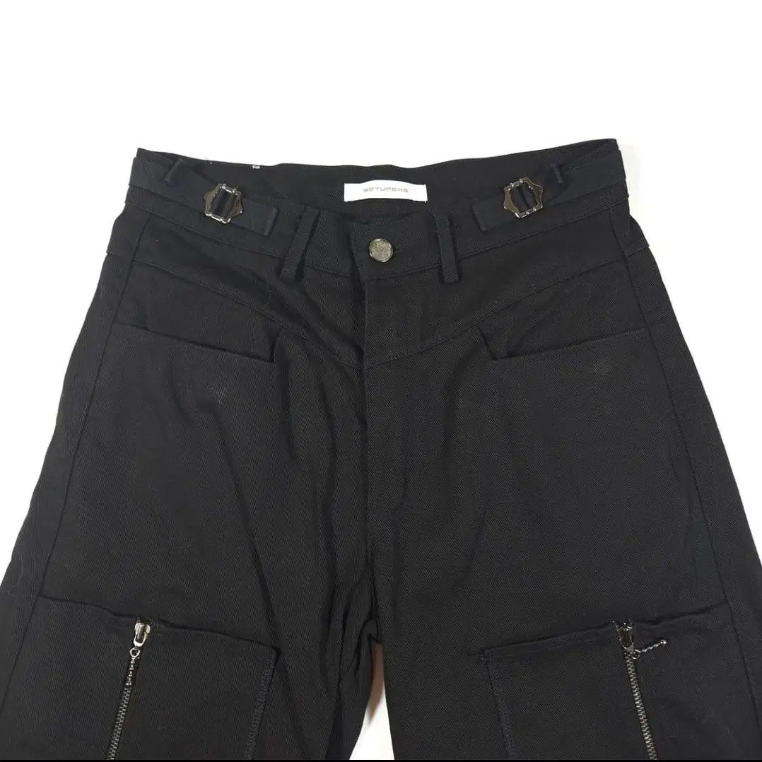 ジッパー マルチ カーゴ ズボンです。ブラック カラーで、様々な スタイルに 無難に よく 合います。複数の ジッパー ディテール ポケットがあり、 収納が 容易で デザイン的にも ユニークです。