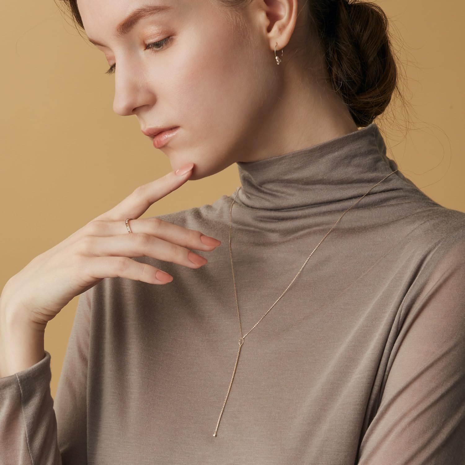 取り外し可能なチェーンチャームが付いたY字ネックレス。バチカンのサイズを小さめにして、すっきり見せているのはアガットならでは。また、Y字部分には存在感のあるきらめくチェーンを使い、単品使いでも美しく見えるデザインになっています。