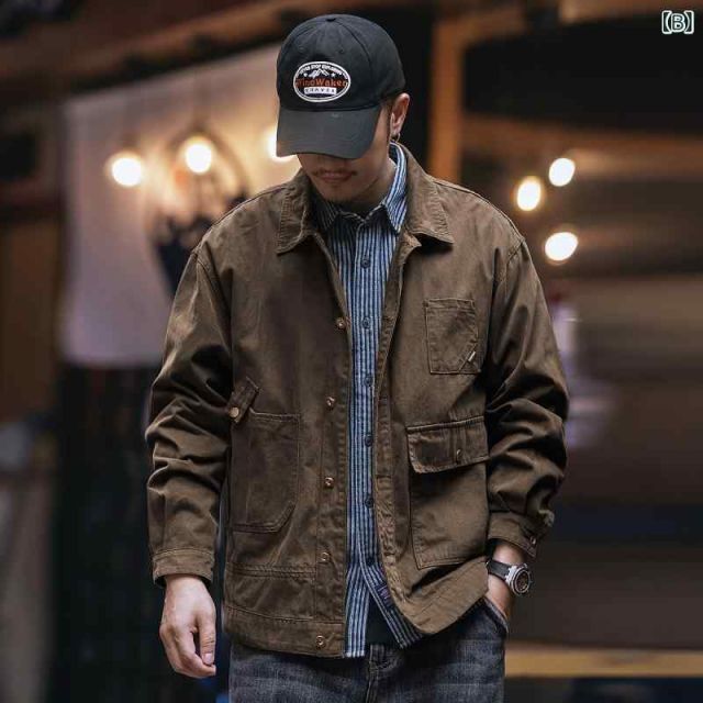商品名:[L - 60-70kg]メンズ ファッション 服 男性用 オシャレ シンプル 大人 かっこいい 大きいサイズ ストリート 紳士服 グリーン アメリカン レトロ ウォッシュ カジュアル シャツ ジャケット トップス ワークジャケット