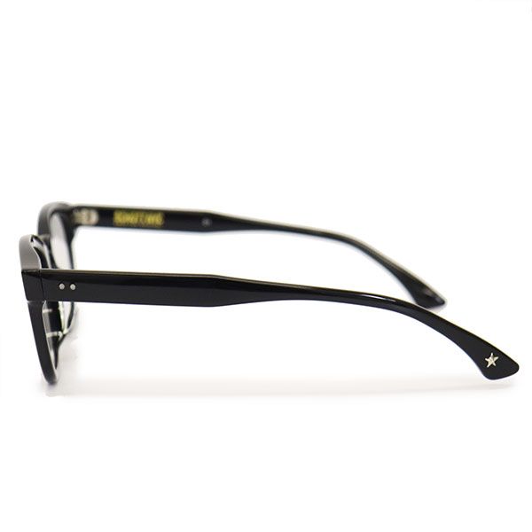 ライン入りの飾りテンプル芯、フロント、テンプルに飾られた丸リベットが当時の雰囲気を醸し出します。
