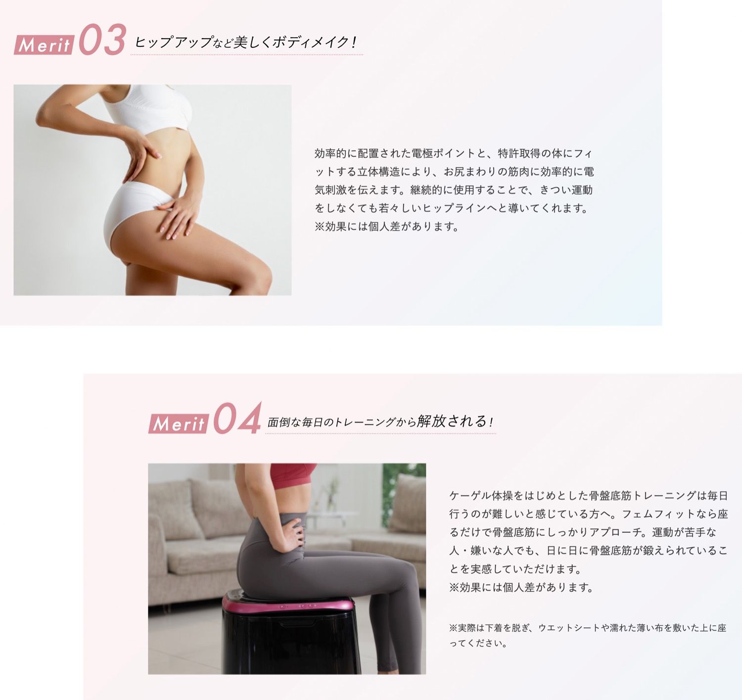 フェムフィットなら座るだけで骨盤底筋にしっかりアプローチ。