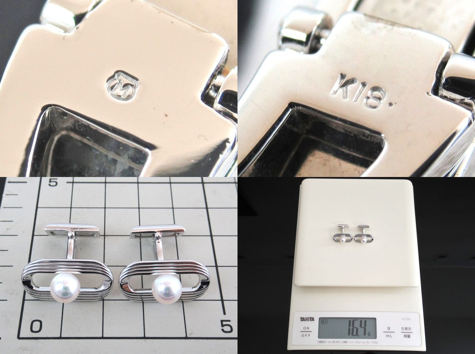 ミキモト カフス アコヤ真珠 7 mm K 18 ホワイトゴールド カフスボタン カフリンクス カウス パール 保存 き rk 9362