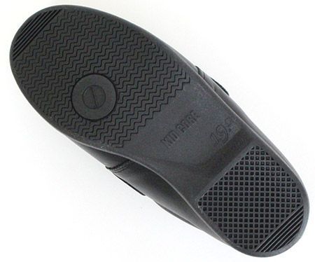 さまざまな形が組み合わさった底面。正しく踏み切れるような工夫と、全方向で止められる工夫がされています。